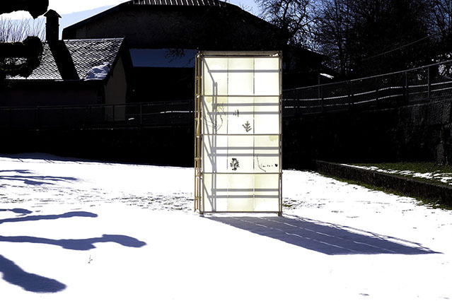 Nous avons 48 machines solaires. Elles font l’archive d’un paysage en transition : des volutes de scolithes, d’épicéas fanés, de reprises de buis sous la première neige, de chrysalides de pyrales, de peaux de vers. Cette tapisserie de cire d’abeille raconte ce moment particulier pendant lequel ces choses existaient encore et déjà.