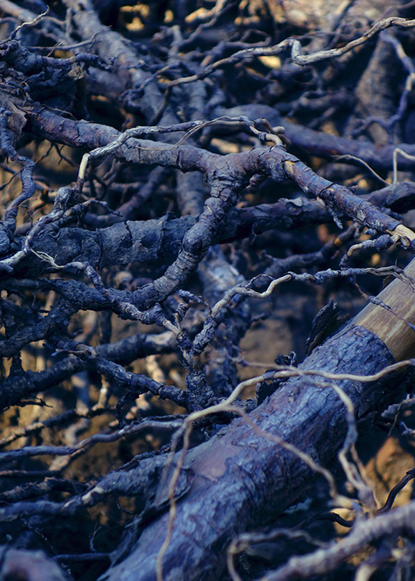 Avant les effets numériques, le cinéma hollywoodien utilisait la fumée pour simuler les paysages sous-marins. Elle était le révélateur de cette profondeur de champ spécifique : du proche lumineux au fond obscur. C’est la même chose ici : sur le papier, les fumées aromatiques de différentes essences de bois se déposent en pellicules pour faire apparaître après un long processus, les reliefs d’un littoral préalablement composé.